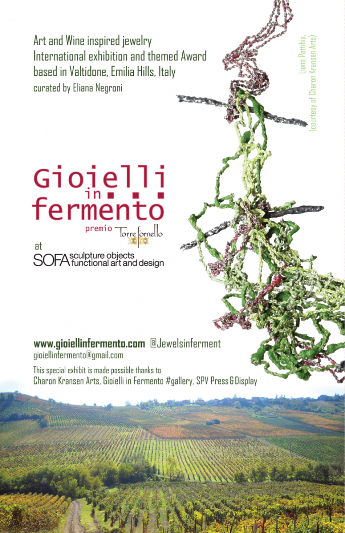 Gioielli in Fermento is an international exhibition project and award for contemporary studio jewelry. Starting from the landscapes of Italy in the winemaking region of Emilia hills, it opens its borders, inviting established and emerging artists from every country to express their relation with the wine world.