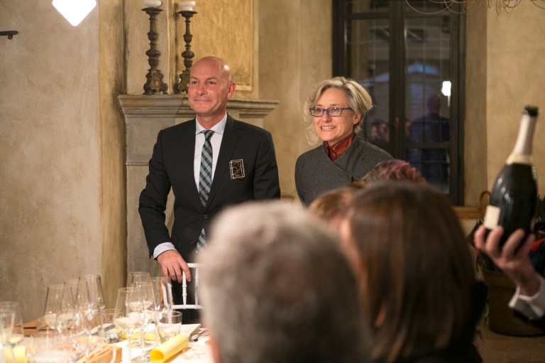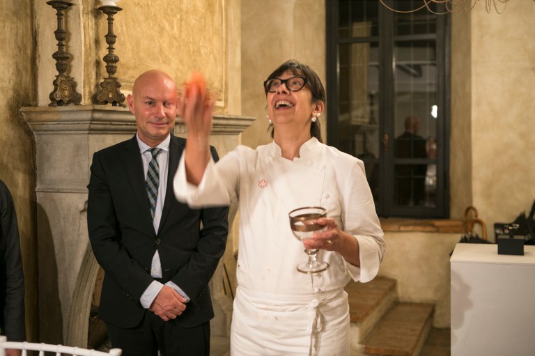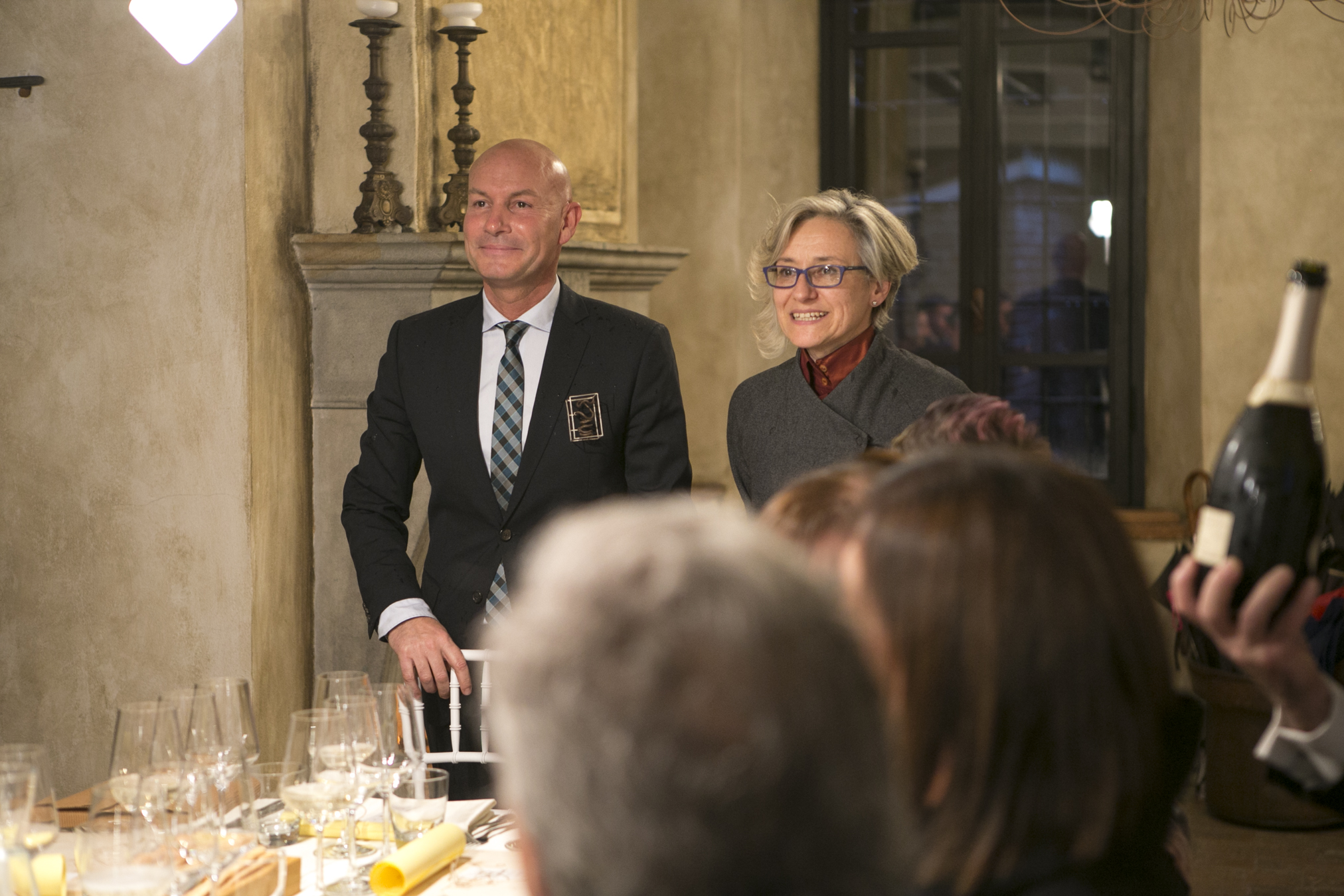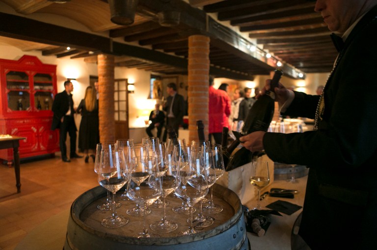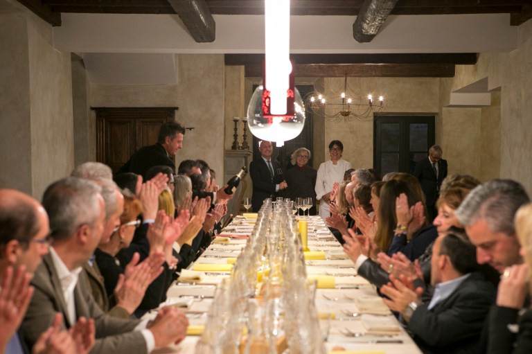i sommelier Fisar, l’allestimento di light design Edison 27 e la mise en place di Corte dei Gioia.