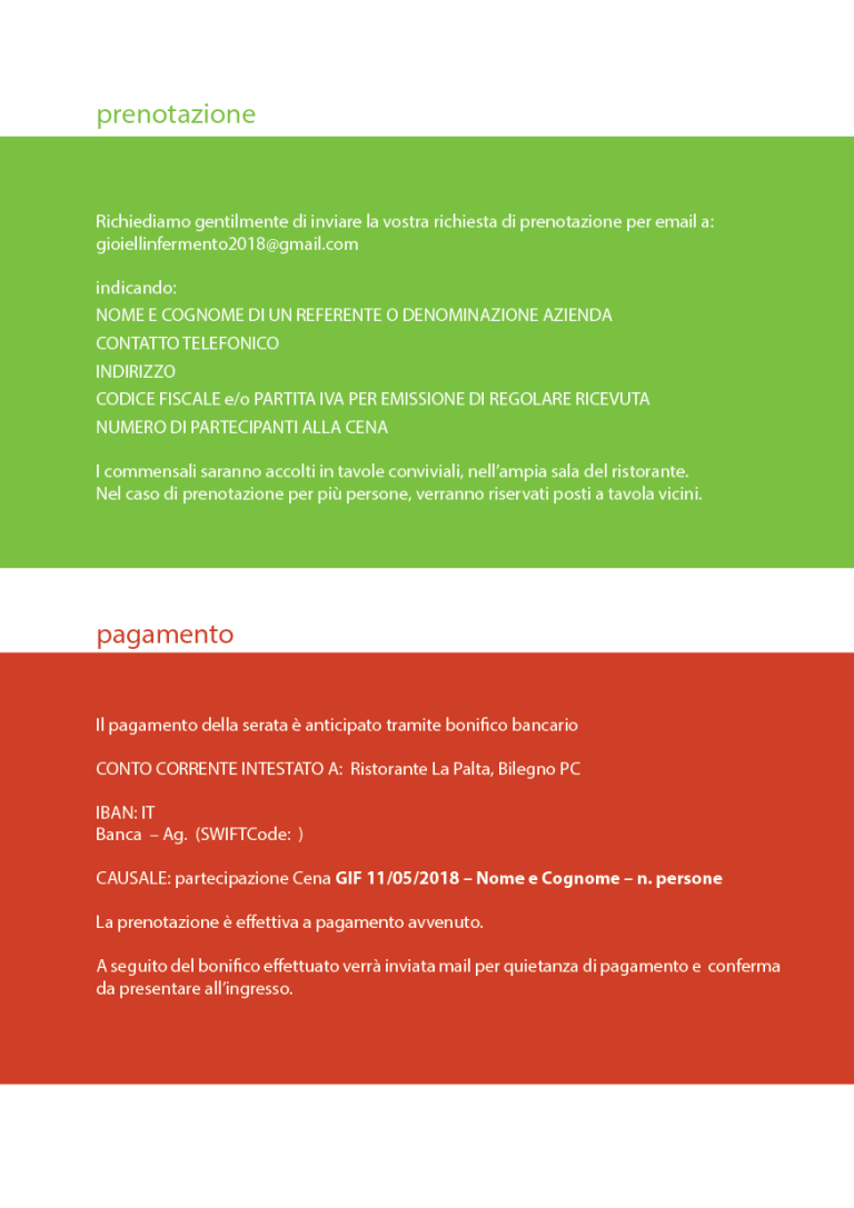 prenotazioni entro il 5 Maggio reservations by May 5th