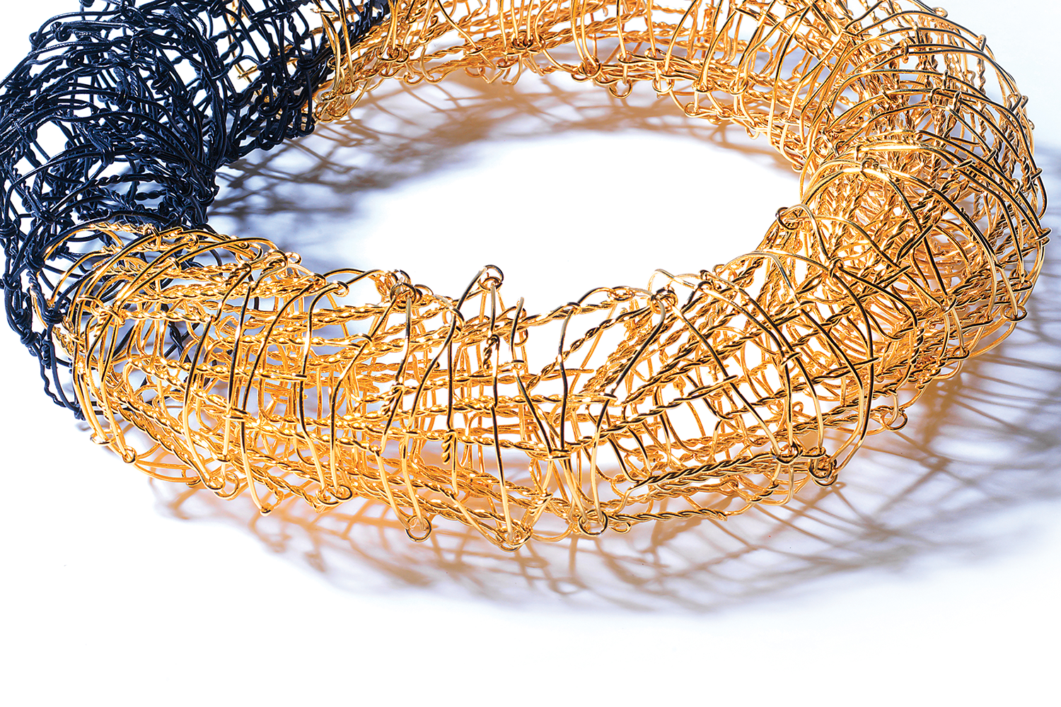 Più volte nel corso degli anni mi sono occupata del lavoro di Nicoletta Frigerio, un’artista che fa ricerca anche attraverso i gioielli. Certo i suoi oggetti da indossare non sono meno importanti delle sue sculture, cosiddette, da appoggio. Sono tutti frutti della sua ricerca sui materiali, sulle forme. Le dimensioni, l’utilizzo diverso non possono, non devono costituire un limite. Il gioiello, progettato e creato da un artista non è, infatti, artigianato, bensì opera, a tutti gli effetti, che merita la giusta collocazione all’interno della storia dell’artista e di conseguenza della storia dell’arte.