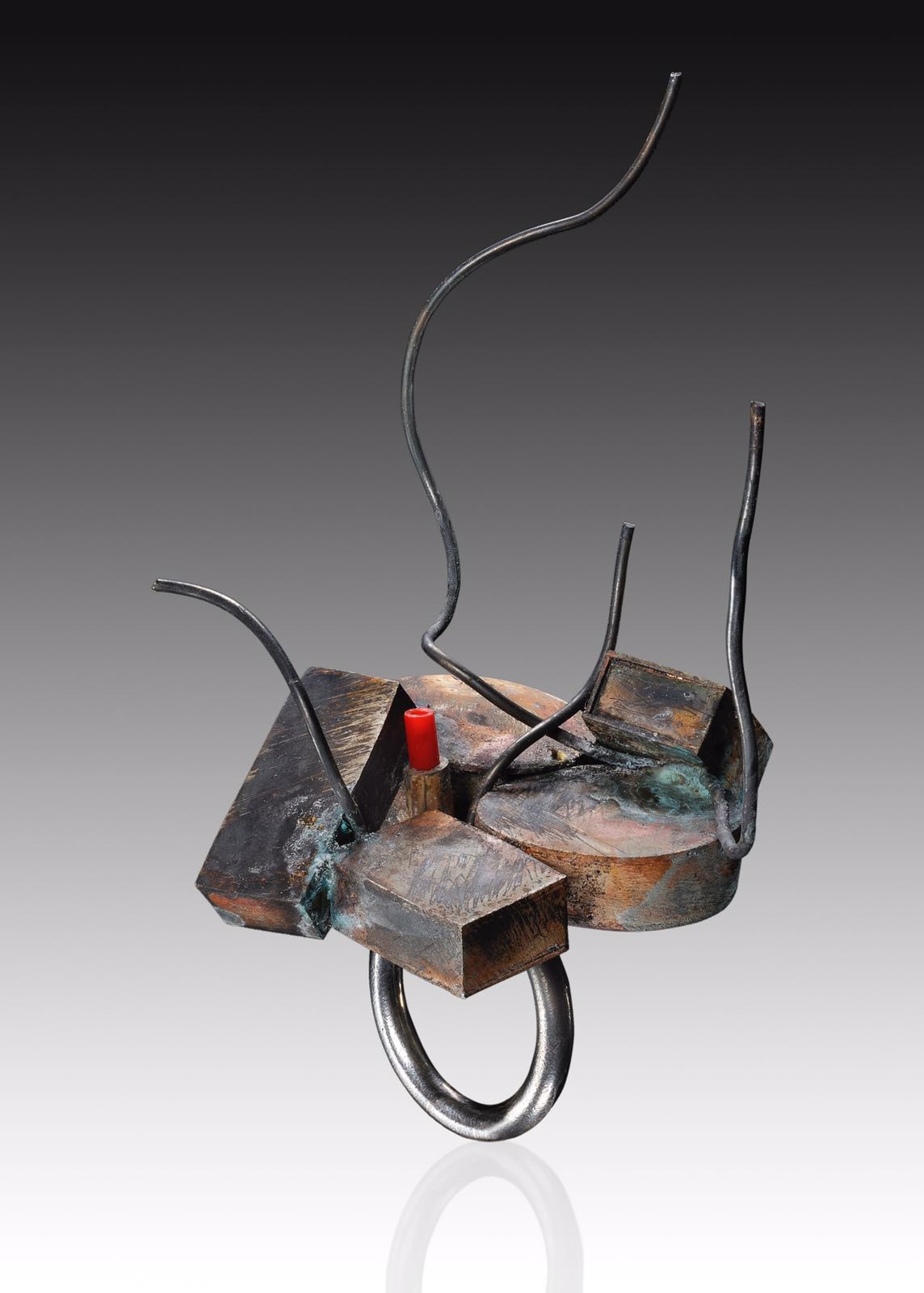 object ring, silver, niello, enamel, patina (anello, oggetto scultura)