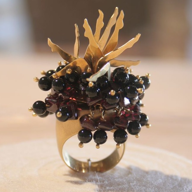 ring, yellow gold, garnet, onyx, private collection