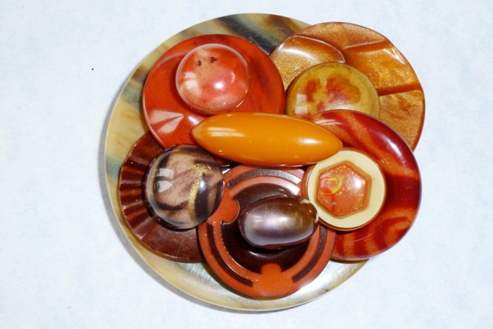 brooch created with casein and celluloid buttons from 1920/1940, silver closure and pin