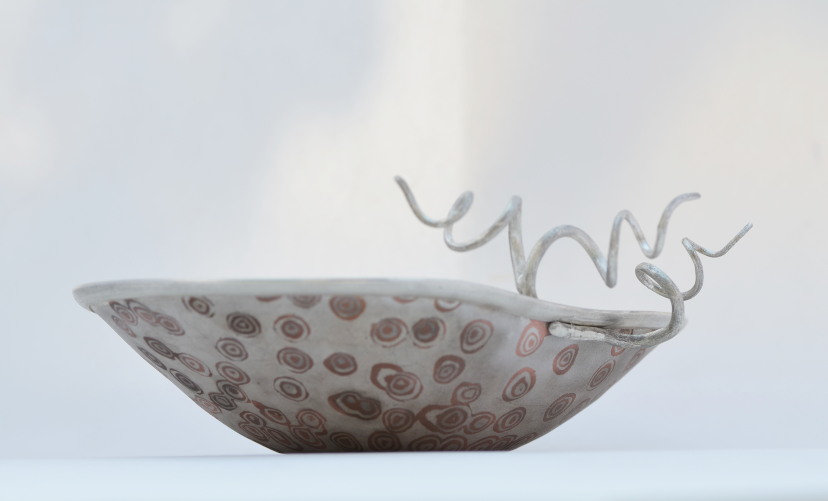 Argento e rame miscelati per produrre una lega (shibuichi), oppure stratificati come una millefoglie metallica (mokume gane), sono ancora materia prima, come l’uva, che va trasformata con sapienza e passione, per essere infine offerti all’esperienza della vista e del gusto, concretamente sensoriale eppure effimera…eppure assoluta, come ogni esperienza estetica.